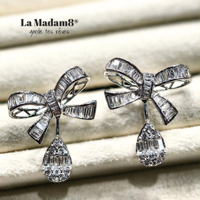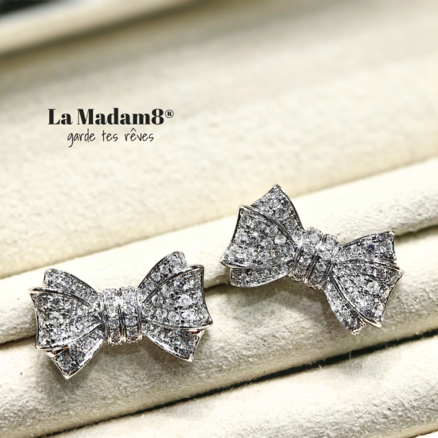 18k蝴蝶結水滴天然鑽石耳環(貨期30/4)