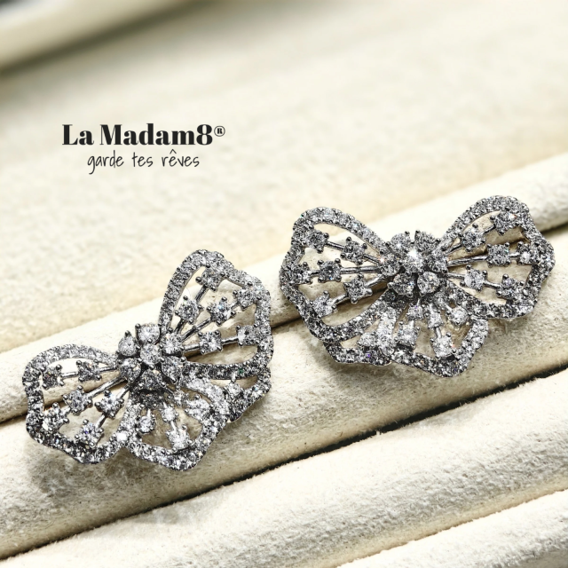 18k蝴蝶蕾絲天然鑽石耳環(貨期30/4)