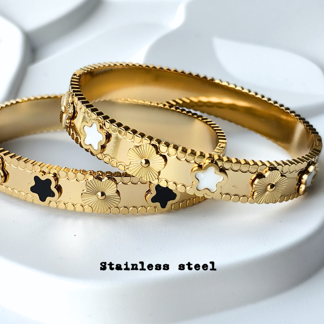 鈦鋼四葉草琺瑯手鈪 (合細至中碼手型)