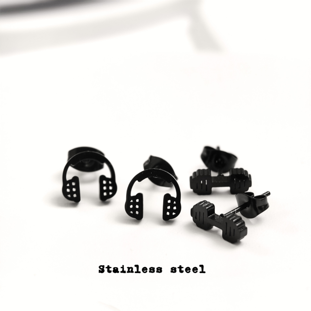 鈦鋼耳筒、啞鈴造型耳環 一套兩對