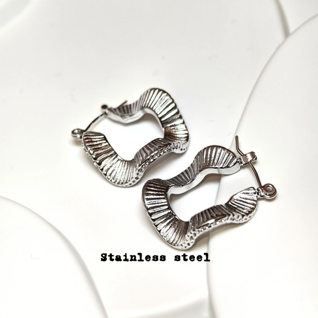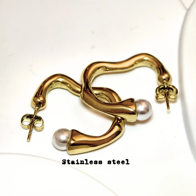 鈦鋼不規則合成珍珠耳圈