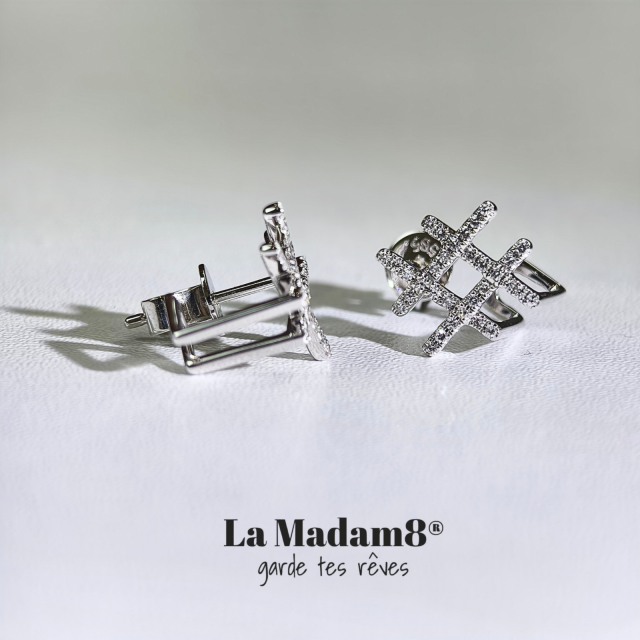 14k天然鑽石萬字夾耳釘 (貨期1/4)