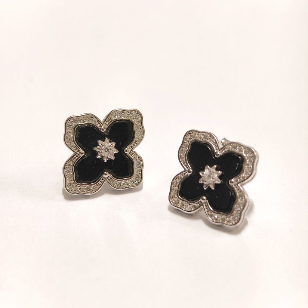 黑馬瑪瑙十字耳環925包白金(貨期15/4)