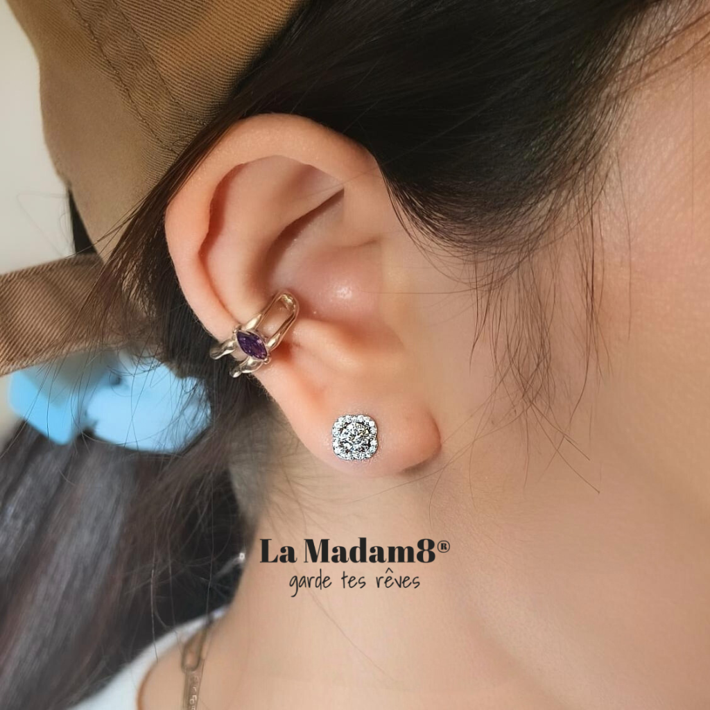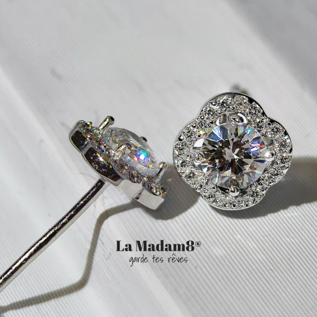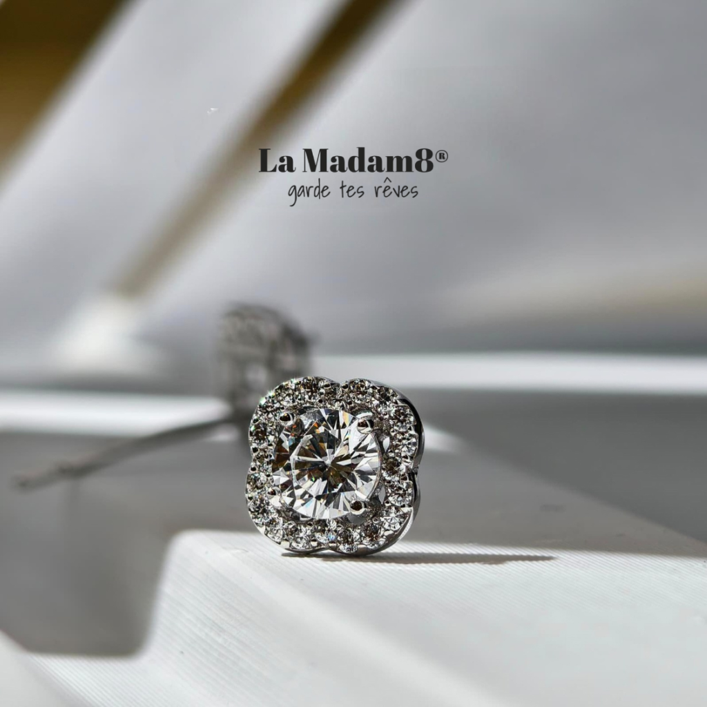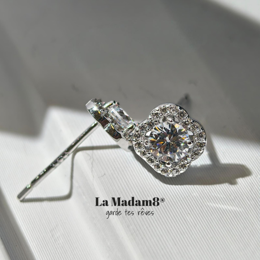 50份圓形培育鑽交叉耳環925包白金 Copy