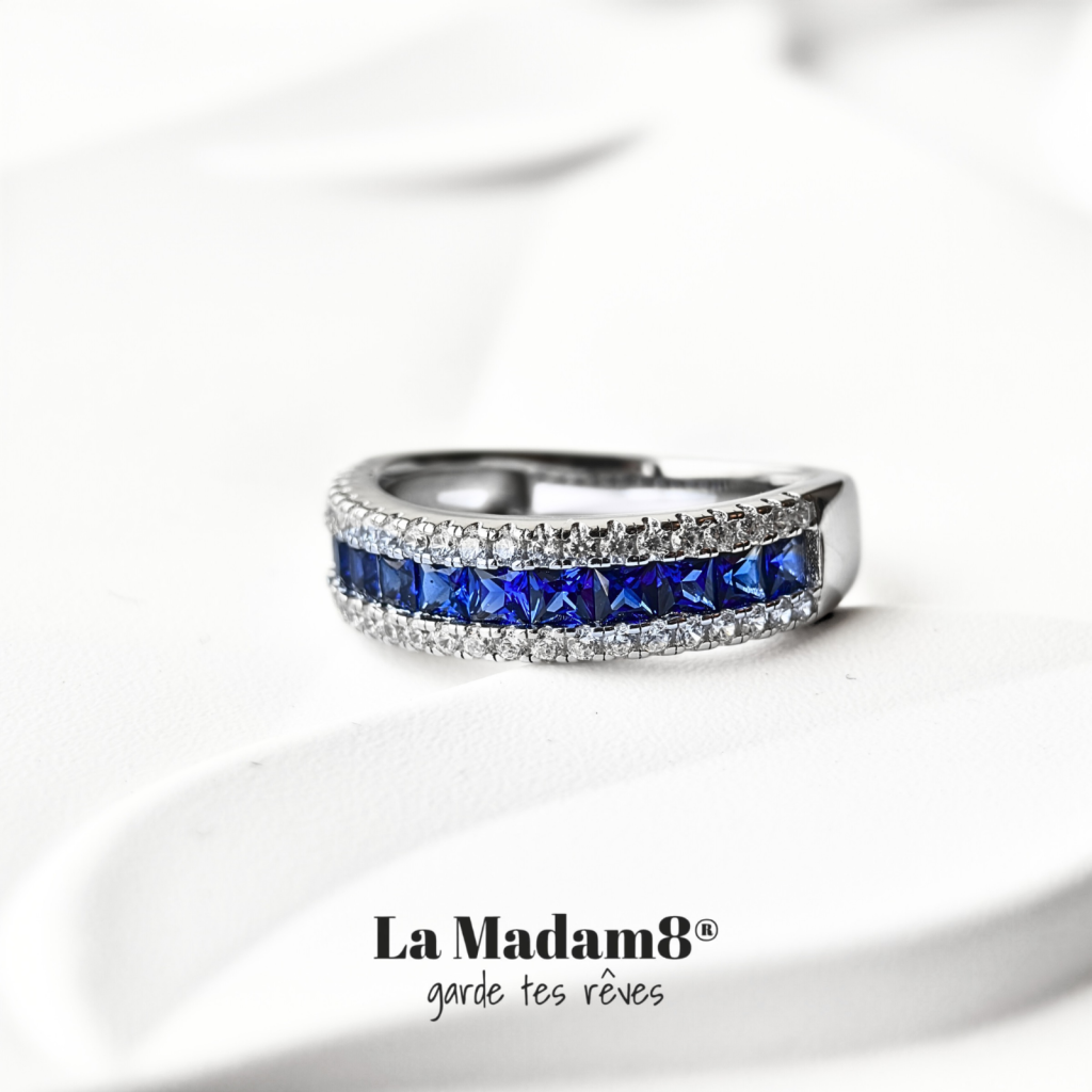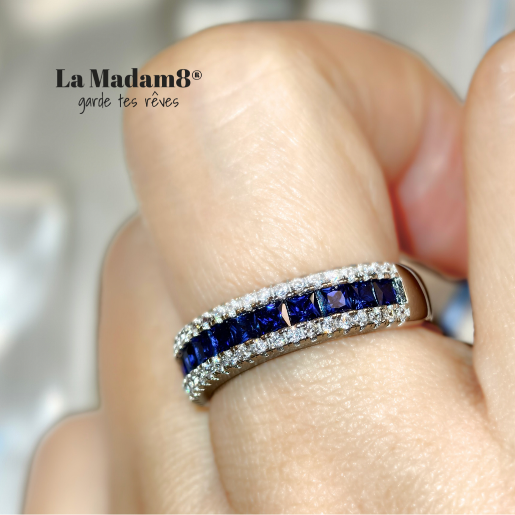 主頁 培育藍寶 純銀包白金戒指