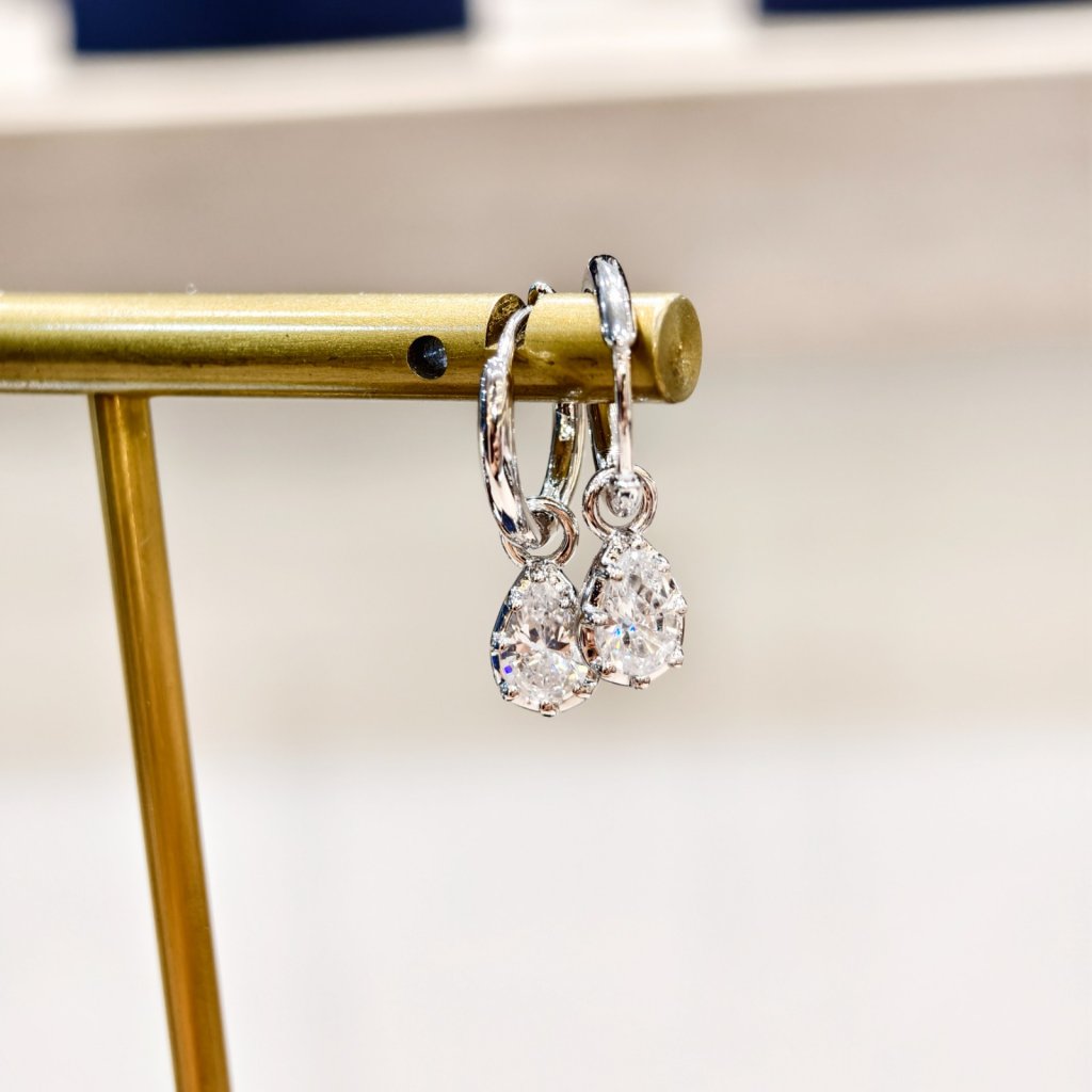 1ct 培育鑽水滴吊吊耳圈925包白金(貨期5/4)