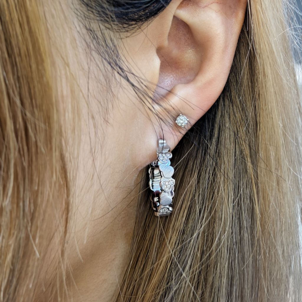 拉絲不規則耳圈925包白金(貨期5/4)