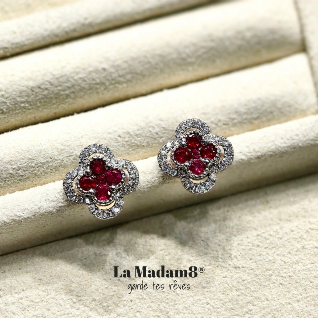 18k紅寶四葉草天然鑽石耳釘(貨期30/4)