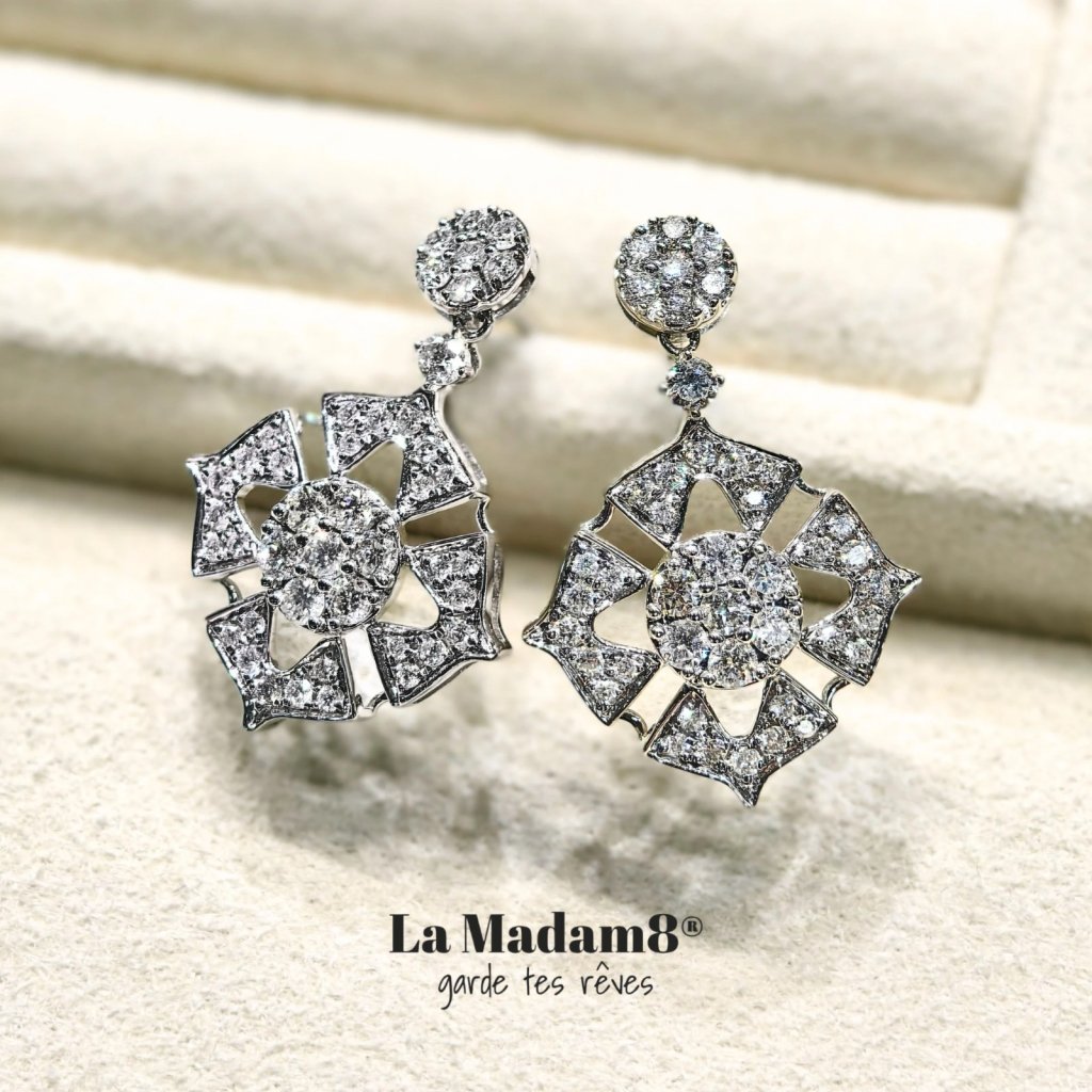 18K通花吊天然鑽石吊耳環(貨期30/4)