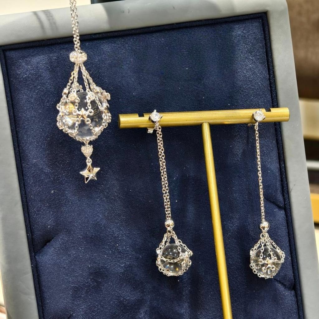 純銀包白金天然白水晶頸鏈/耳環(貨期5/3)