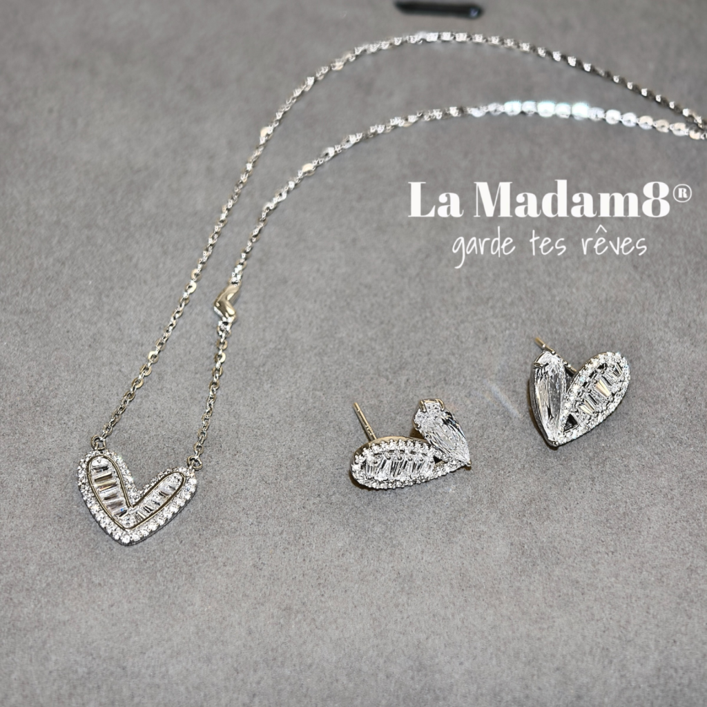 s925包白金不規則心形頸鏈、耳環套裝