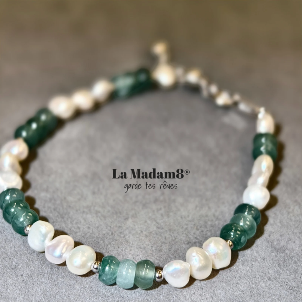 s9258白金深綠色翡翠珍珠手鏈