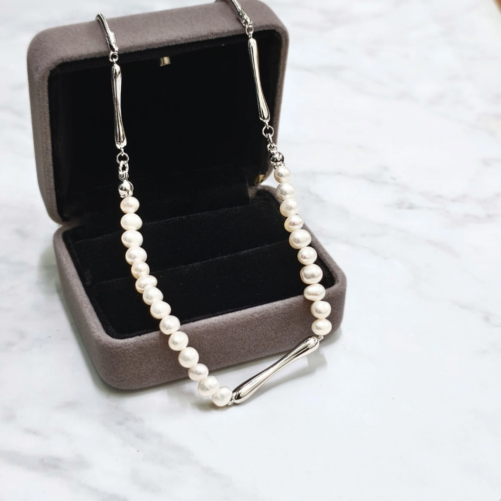 s925包白金珍珠頸鏈