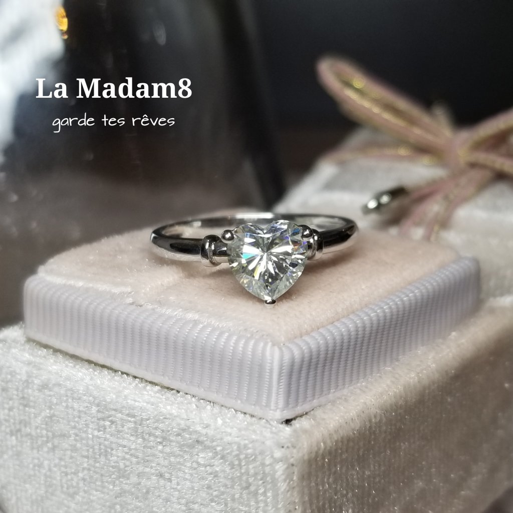 18k白金心形莫桑鑽戒指