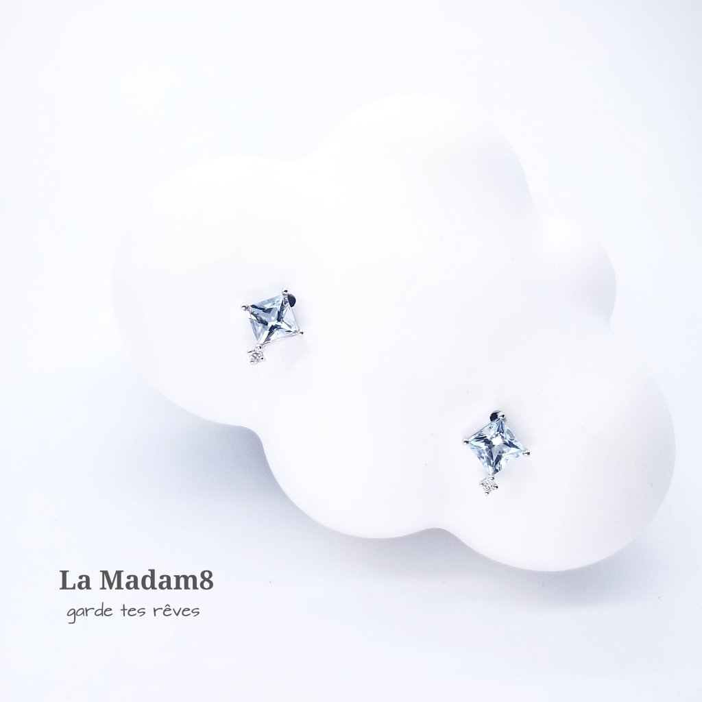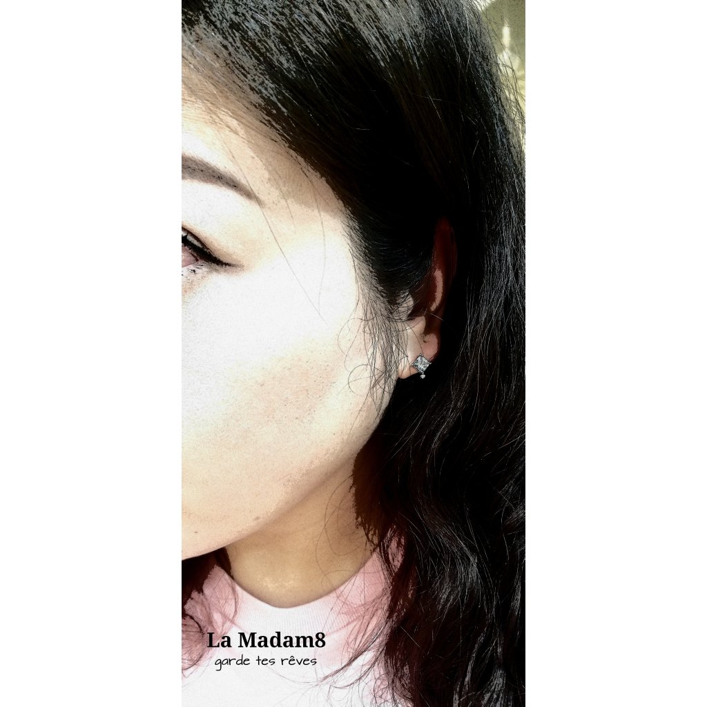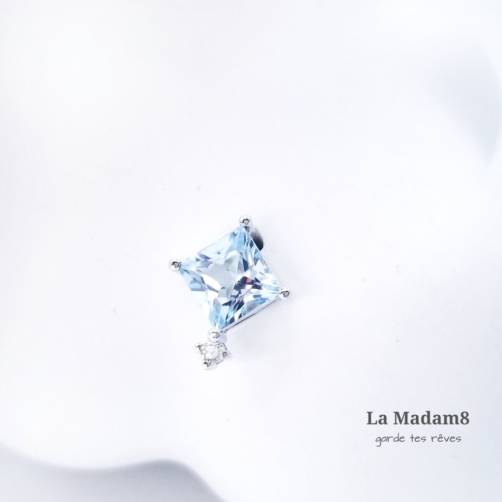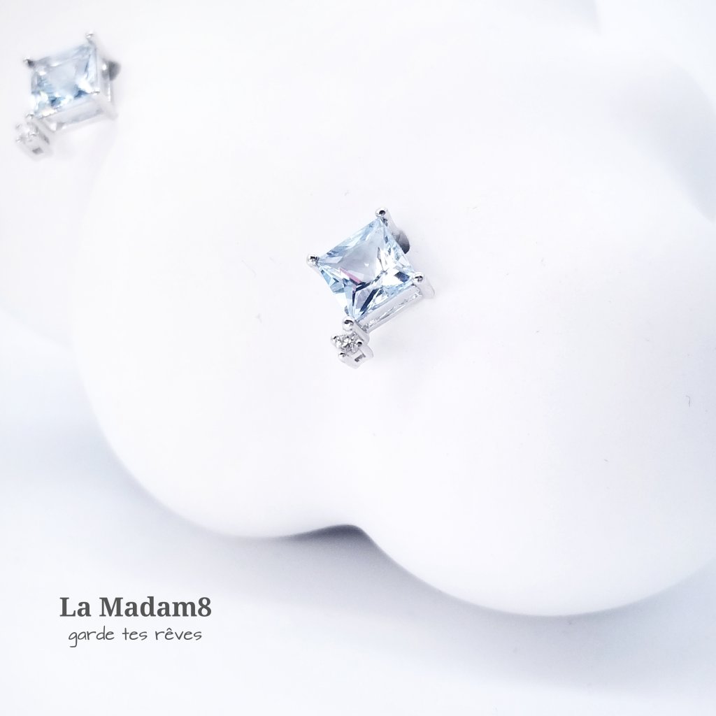 18k白金耳環 鑲嵌70分公主方海藍寶 4分天然鑽石