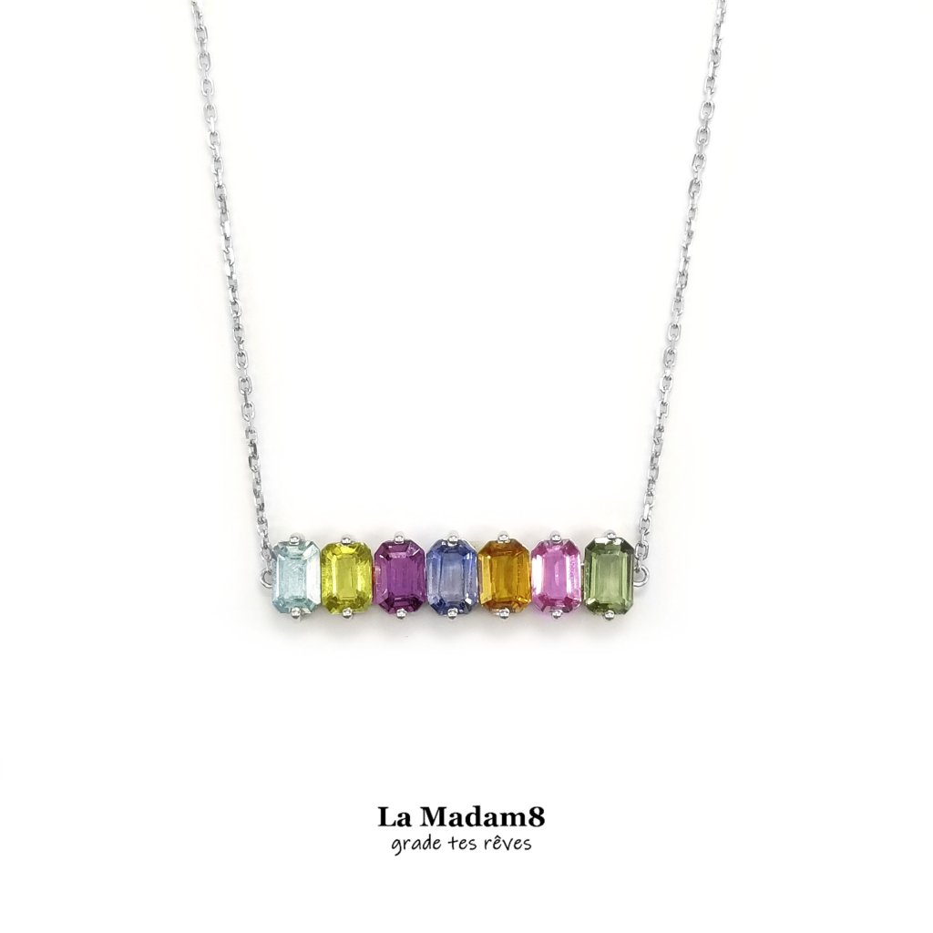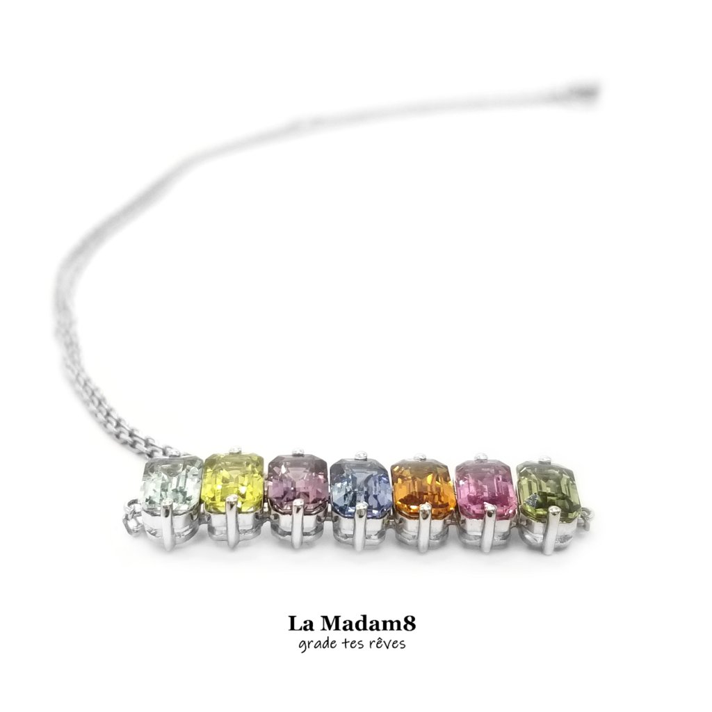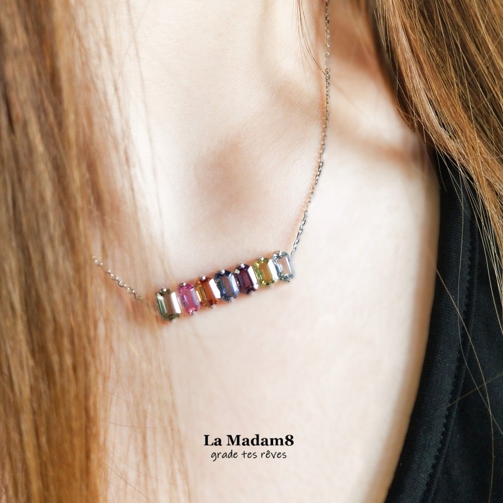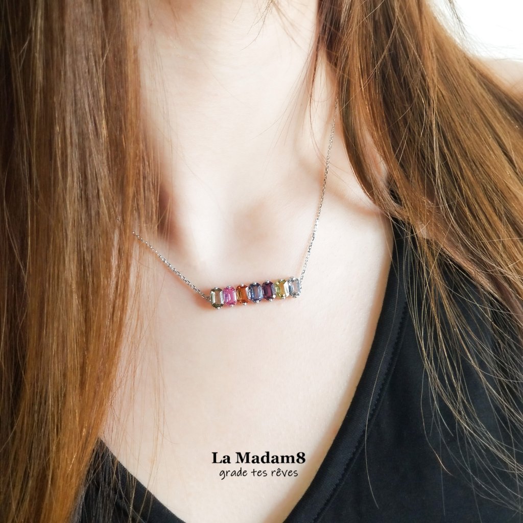 18K 彩色藍寶無燒頸鏈