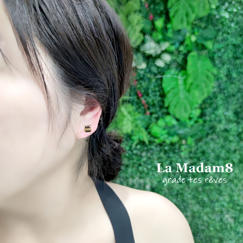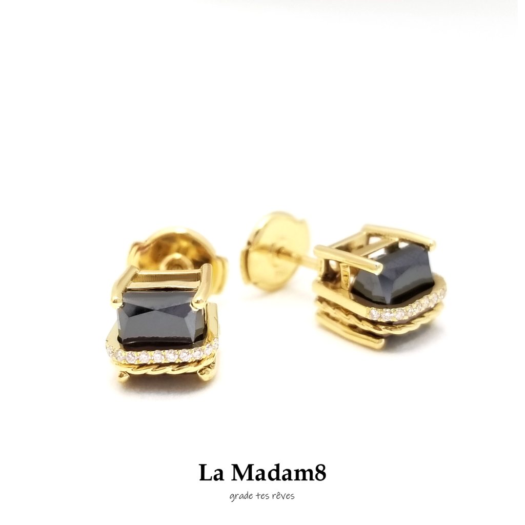 18K 黃金黑鑽耳環
