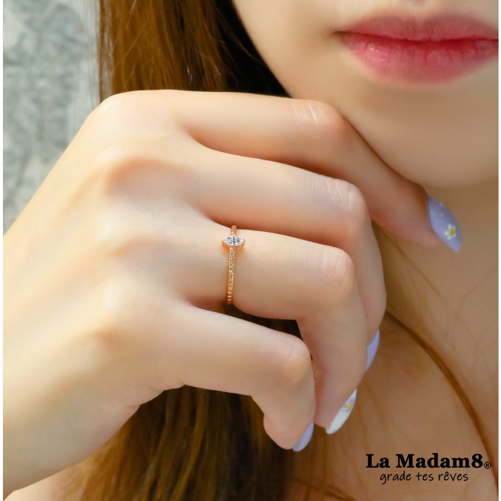 18K 馬眼窩釘鑽石戒指