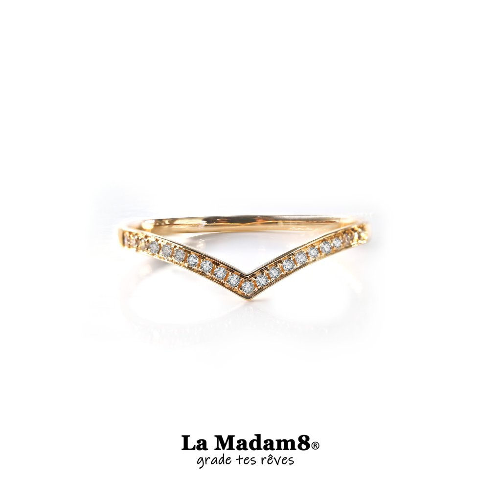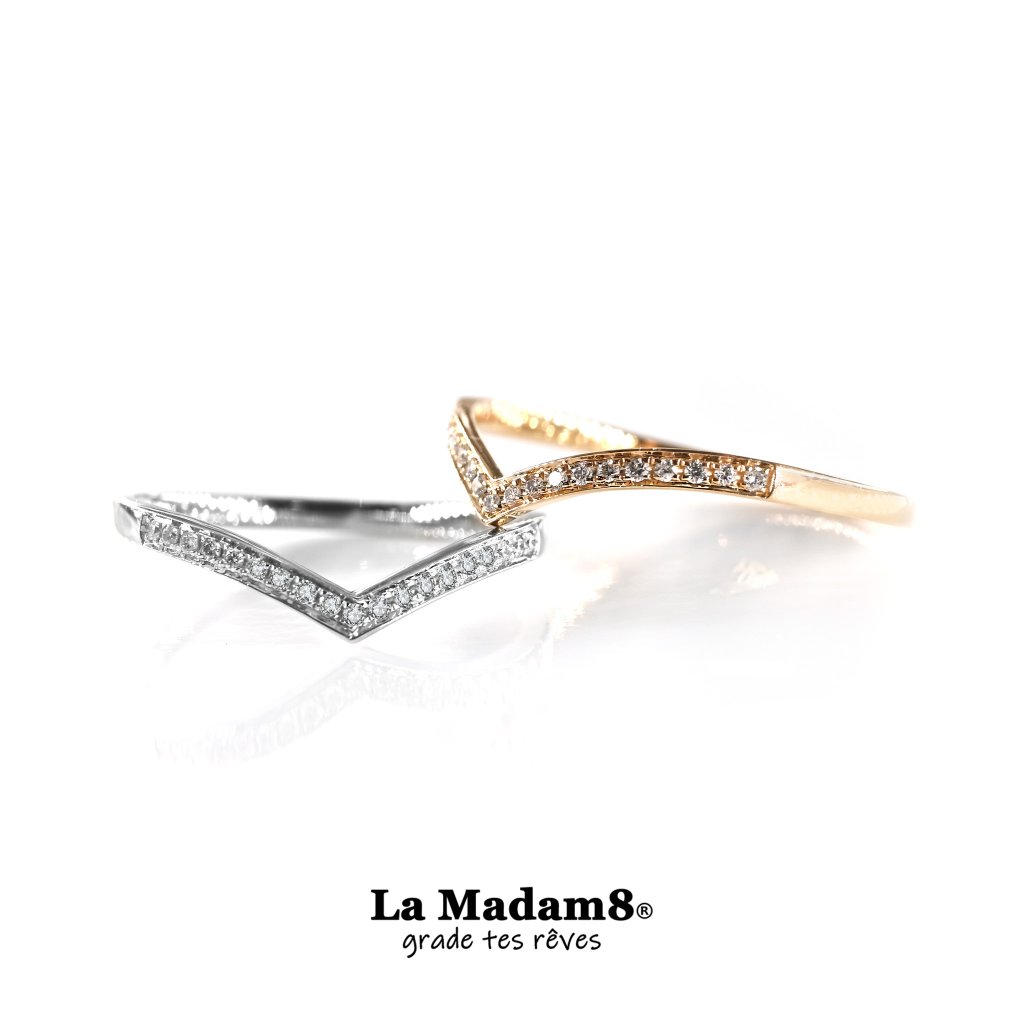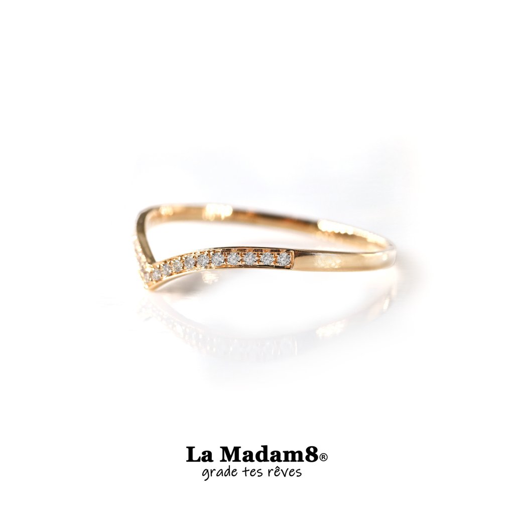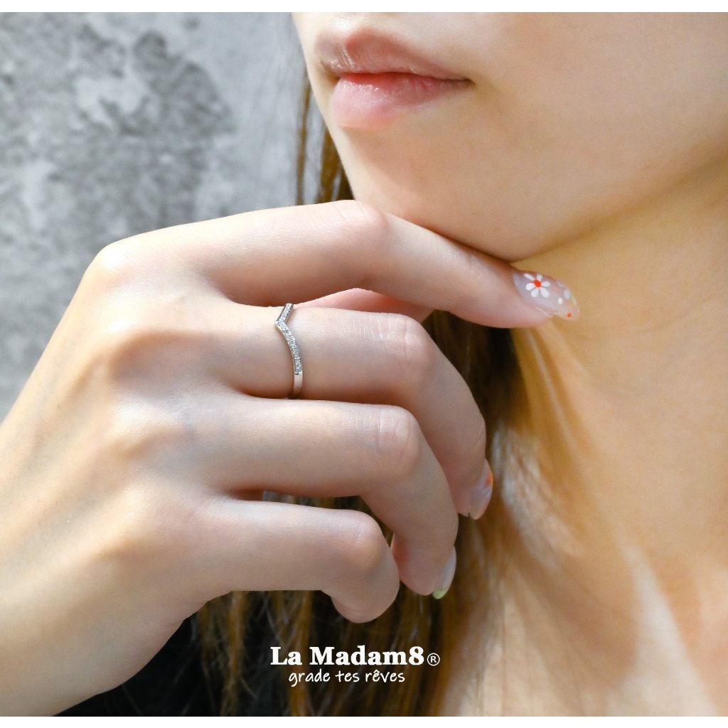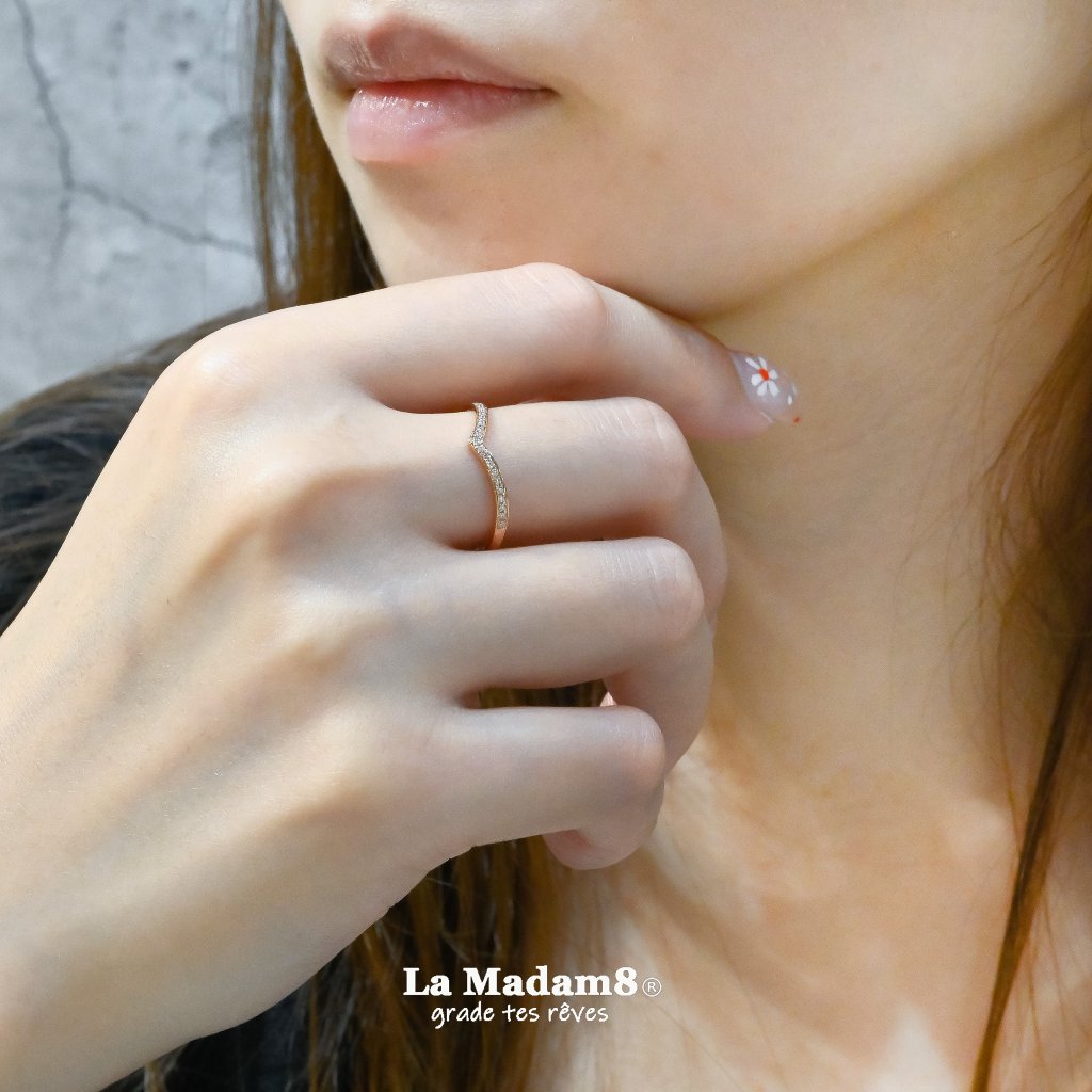 18K V形鑽石線戒