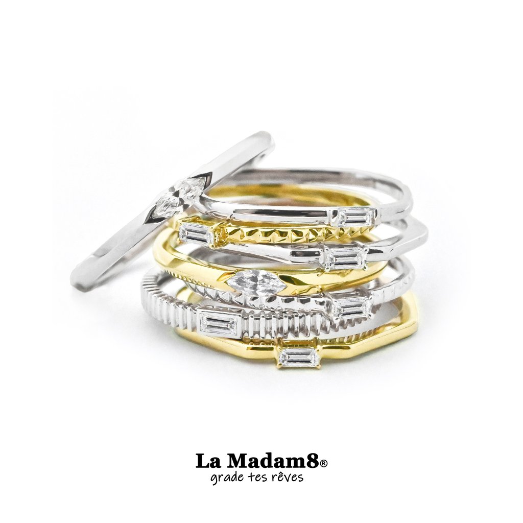 14K 小八角鑽石線戒