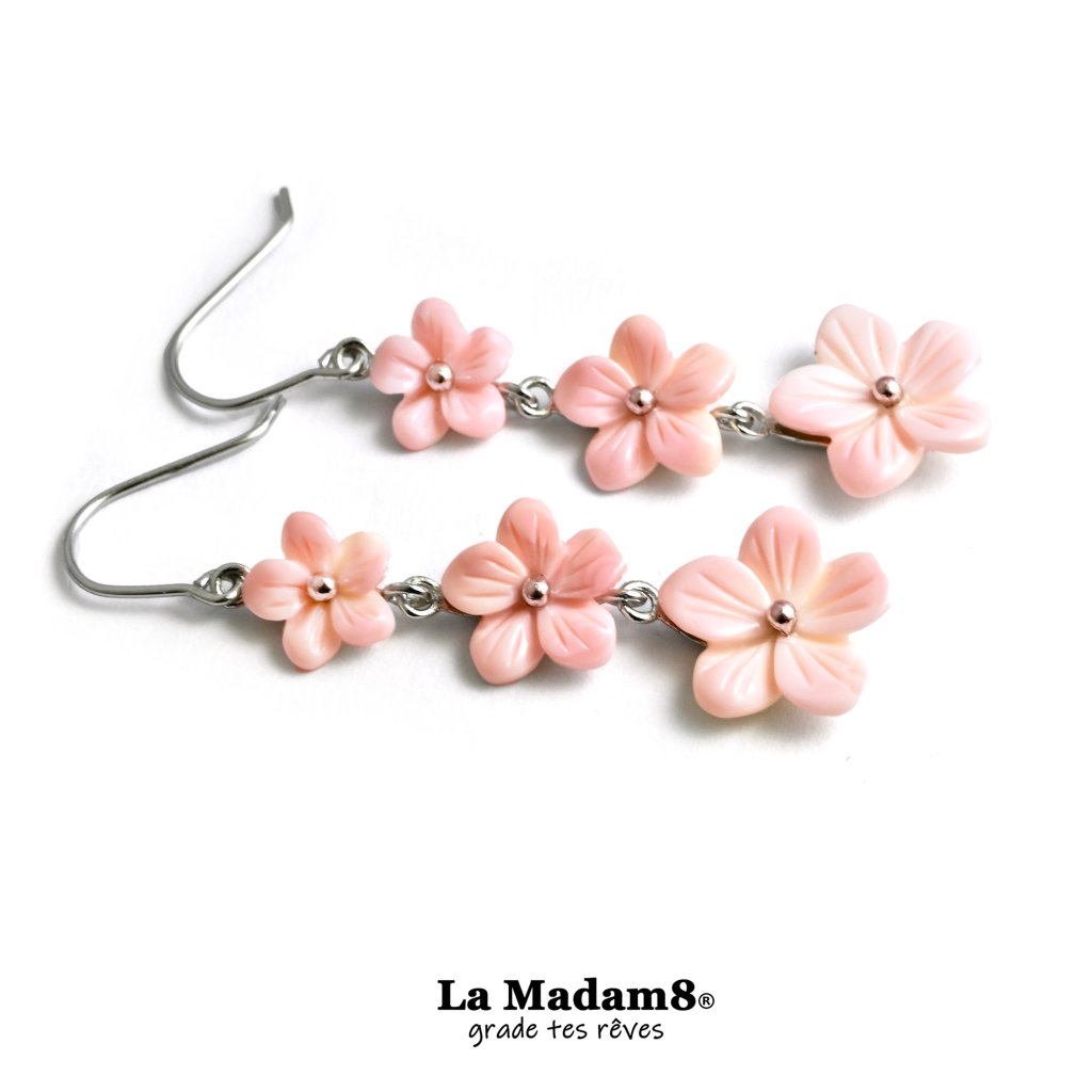 S925 純銀花花女皇貝耳環
